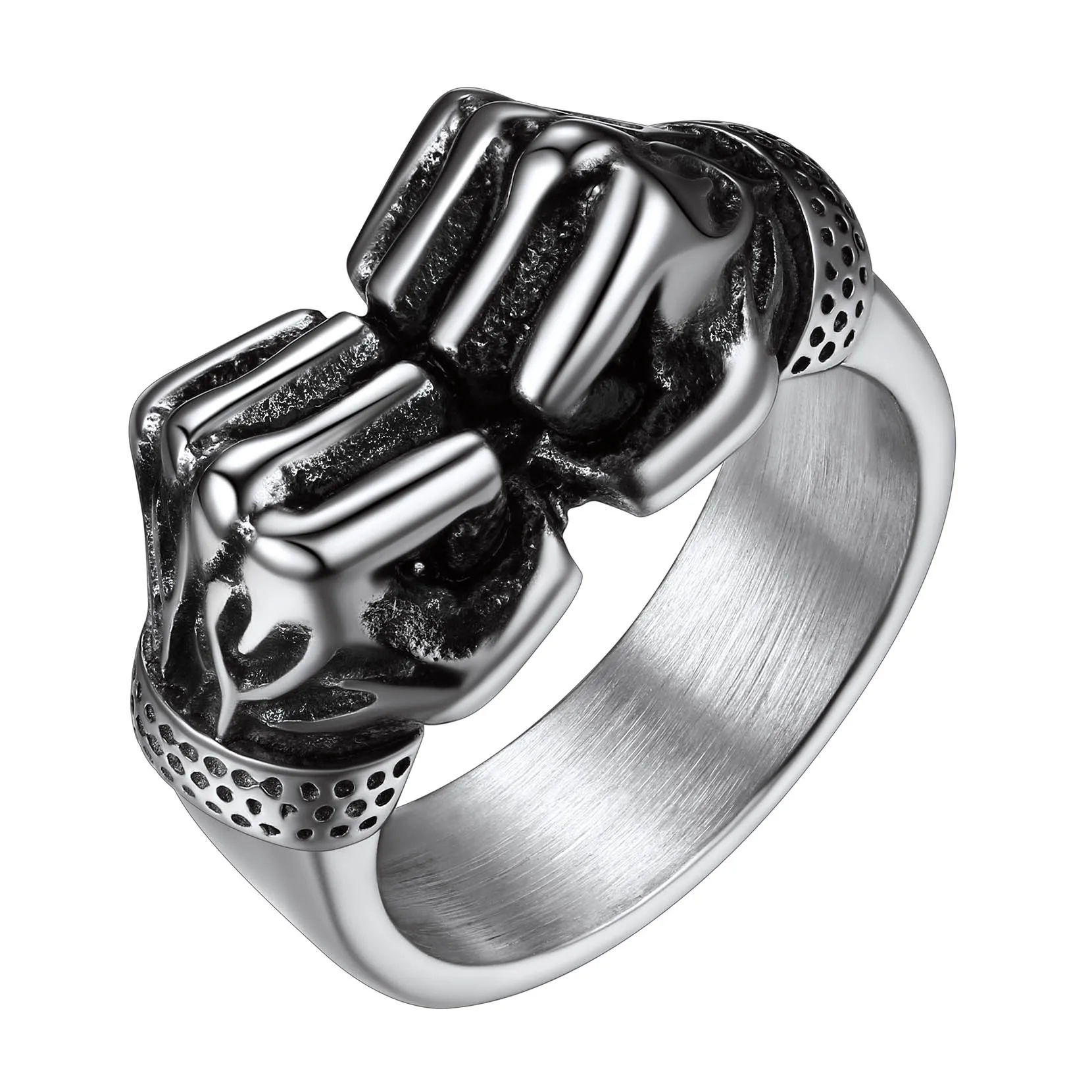 Bague double poings, bijou de qualité supérieure, finition très soignée, en acier inoxydable, couleur or, argent, ou noir. Bijou élégant, idée cadeau géniale pour votre partenaire. Collection 2026.