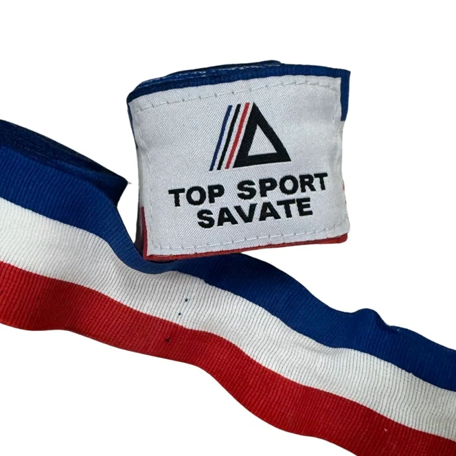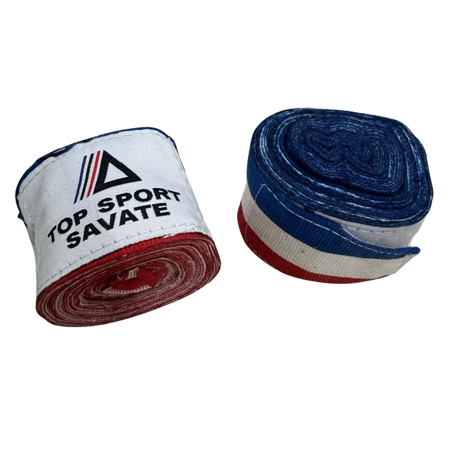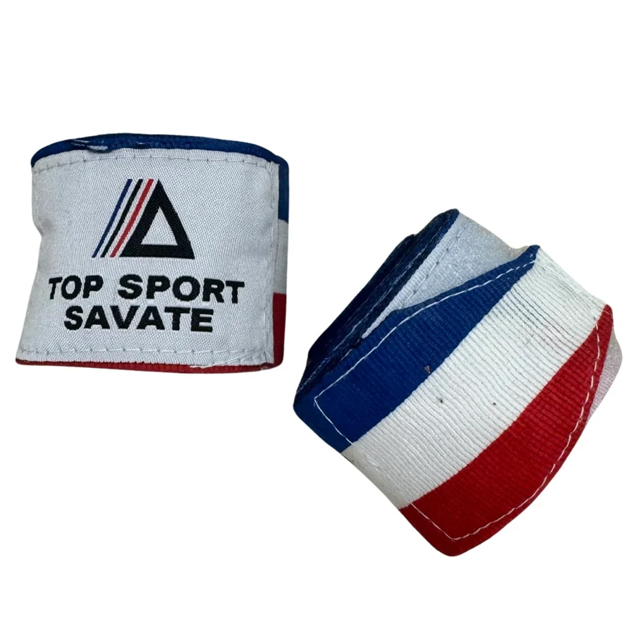 Ces bandes de boxe Top Sport Savate ont été confectionnées pour vous apporter une meilleure protection des mains. Couleurs : bleu, blanc, rouge. Fermeture Velcro Vendu par paire (4,5M x2) Excellent rapport qualité/prix Adaptés aux loisirs et aux compétiteurs Pour plus d’infos : [email protected]