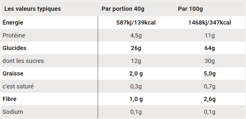 Convient aux régimes : végétariens, sans blé, sans produits laitiers, sans noix