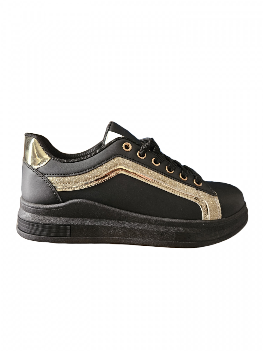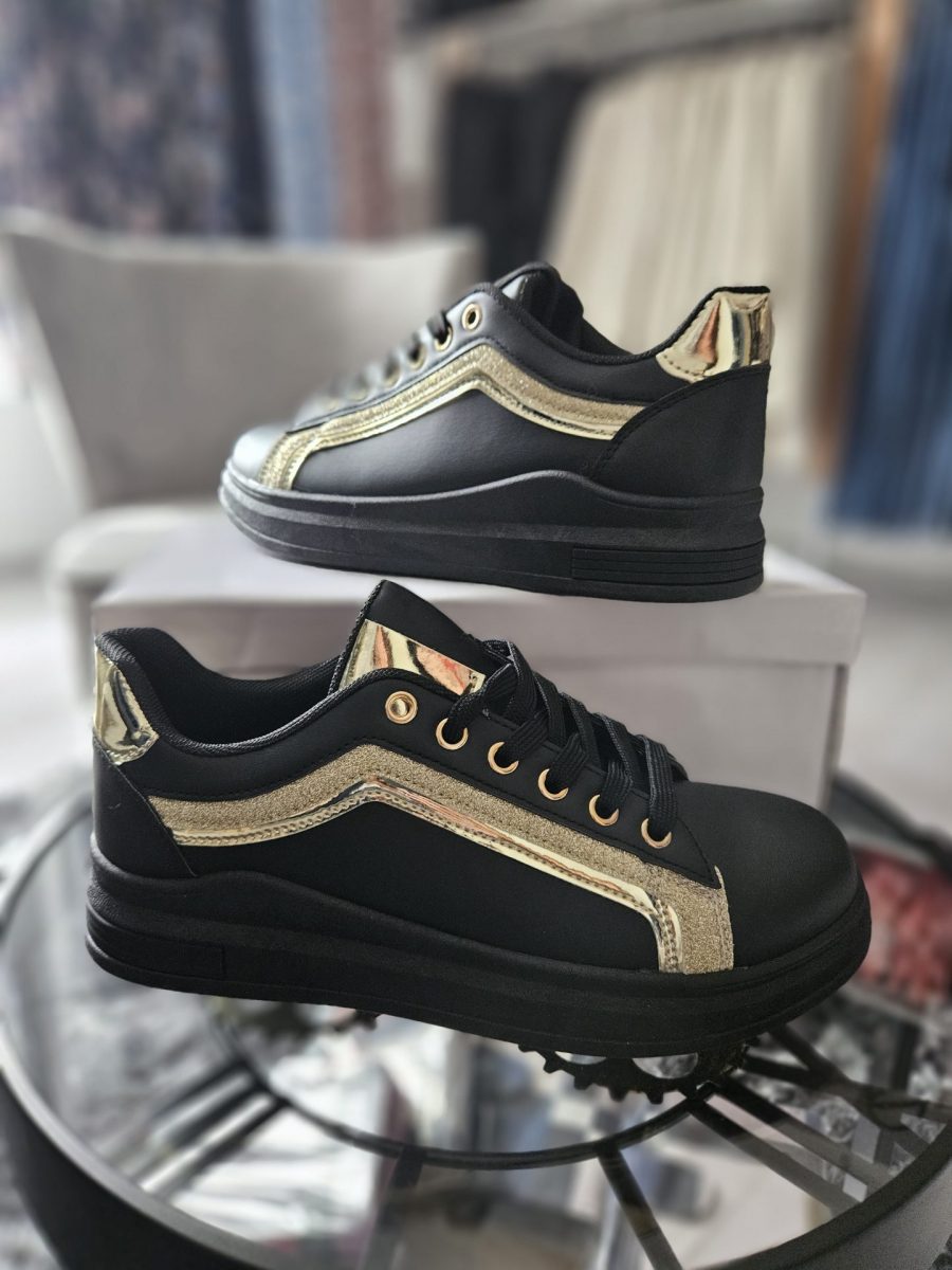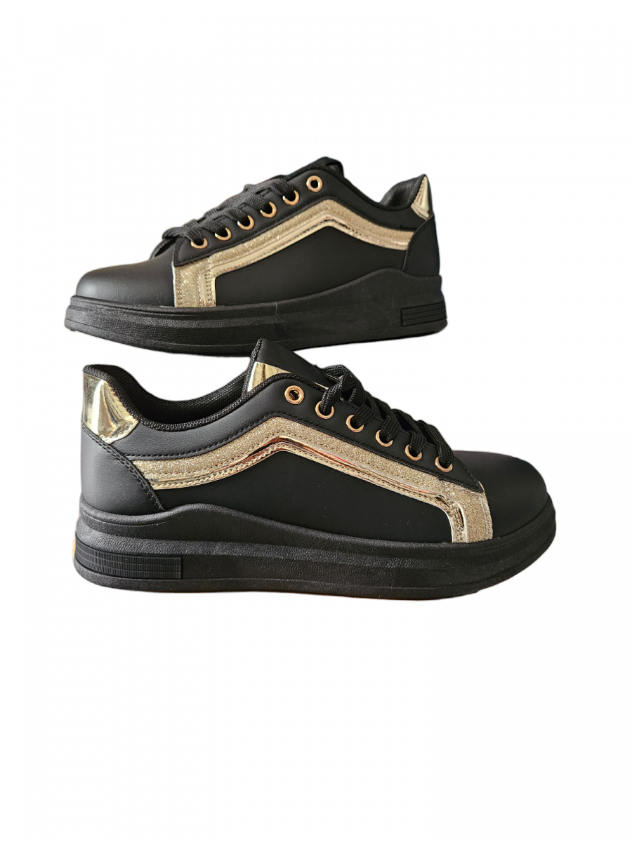 Baskets noires  avec contrefort or. Du 36 au 41.