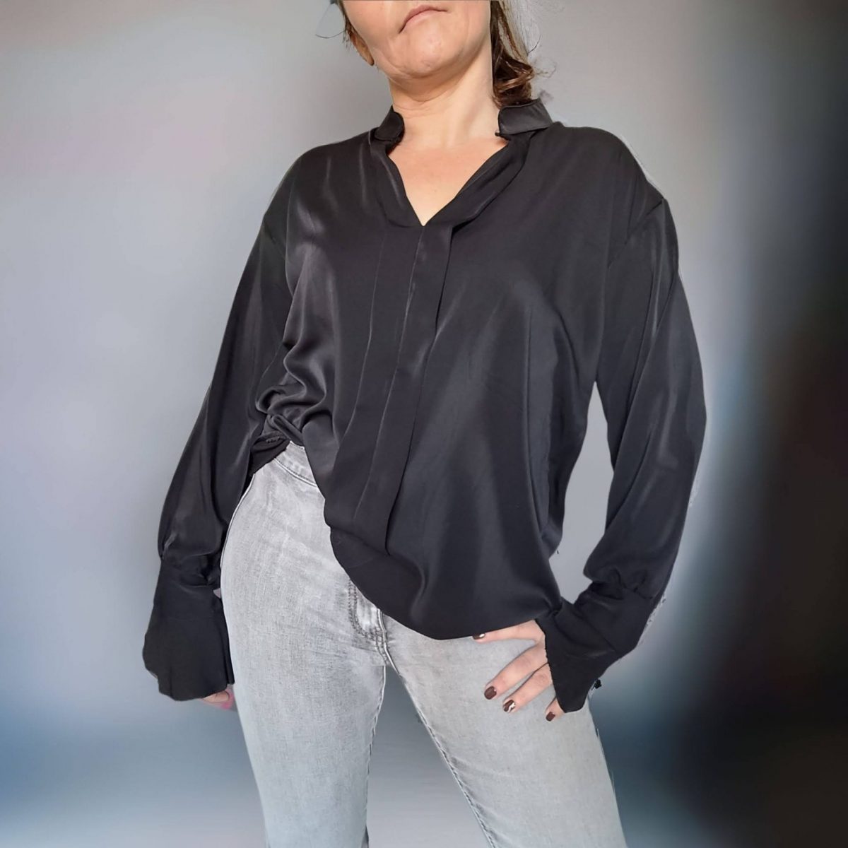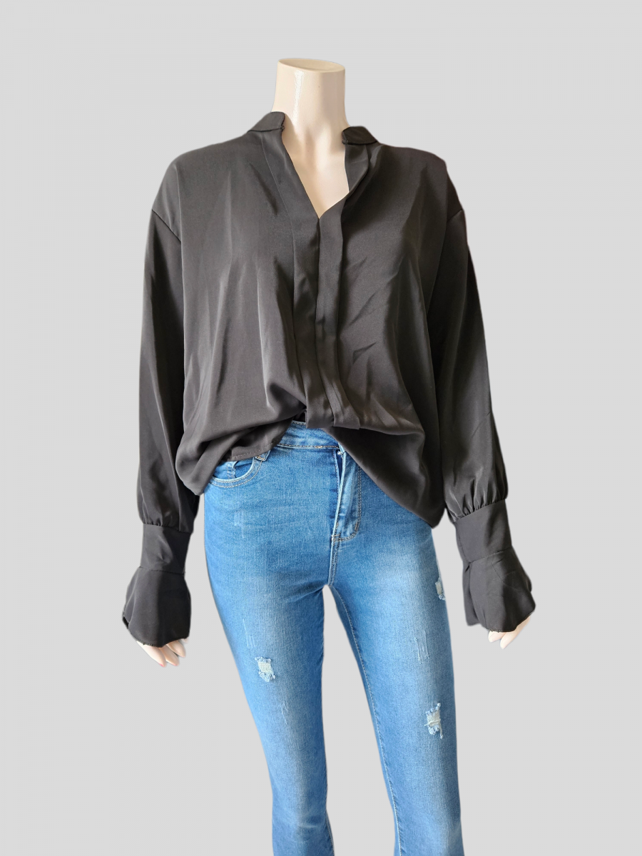 Blouse satinée manches longues.