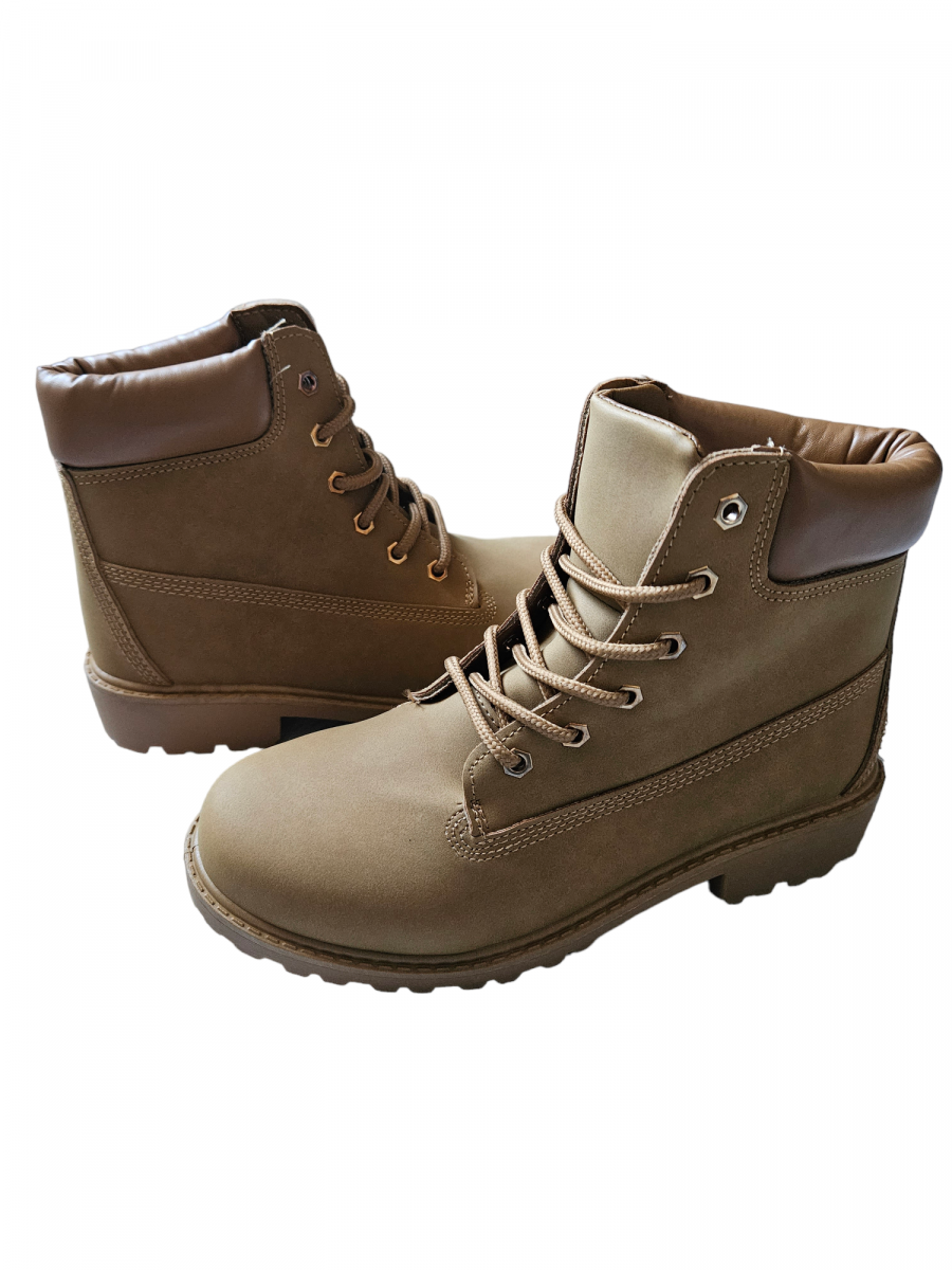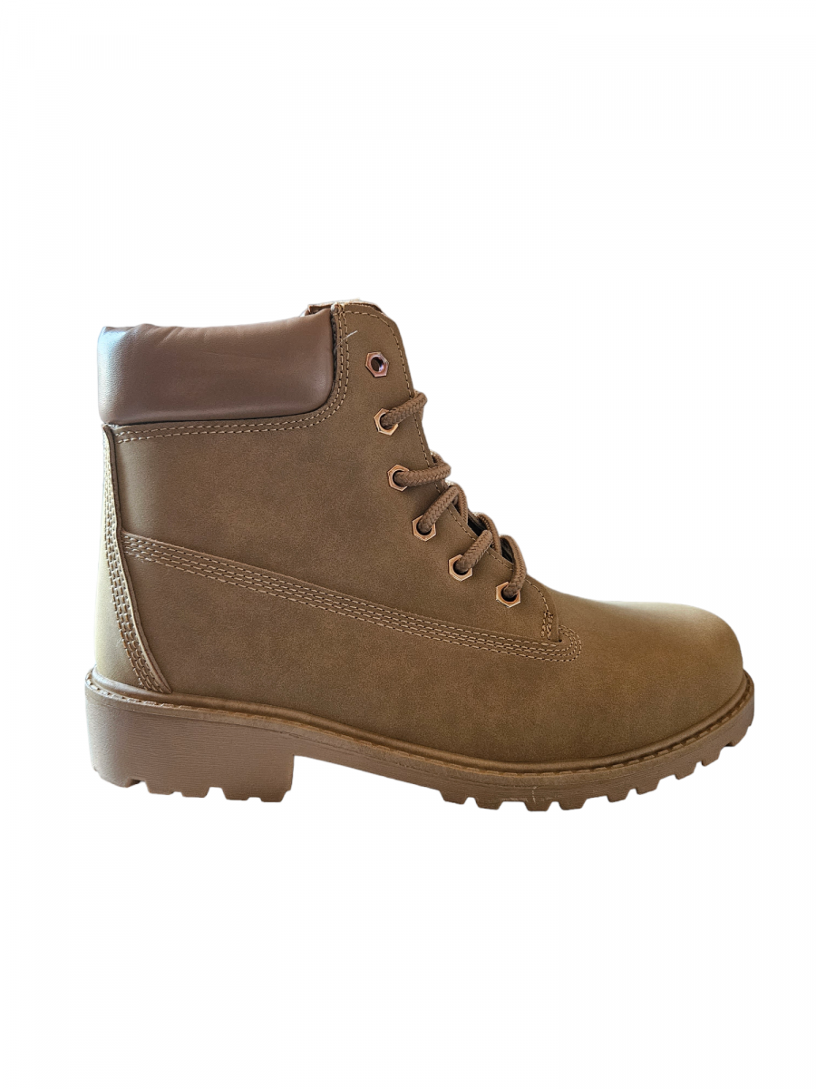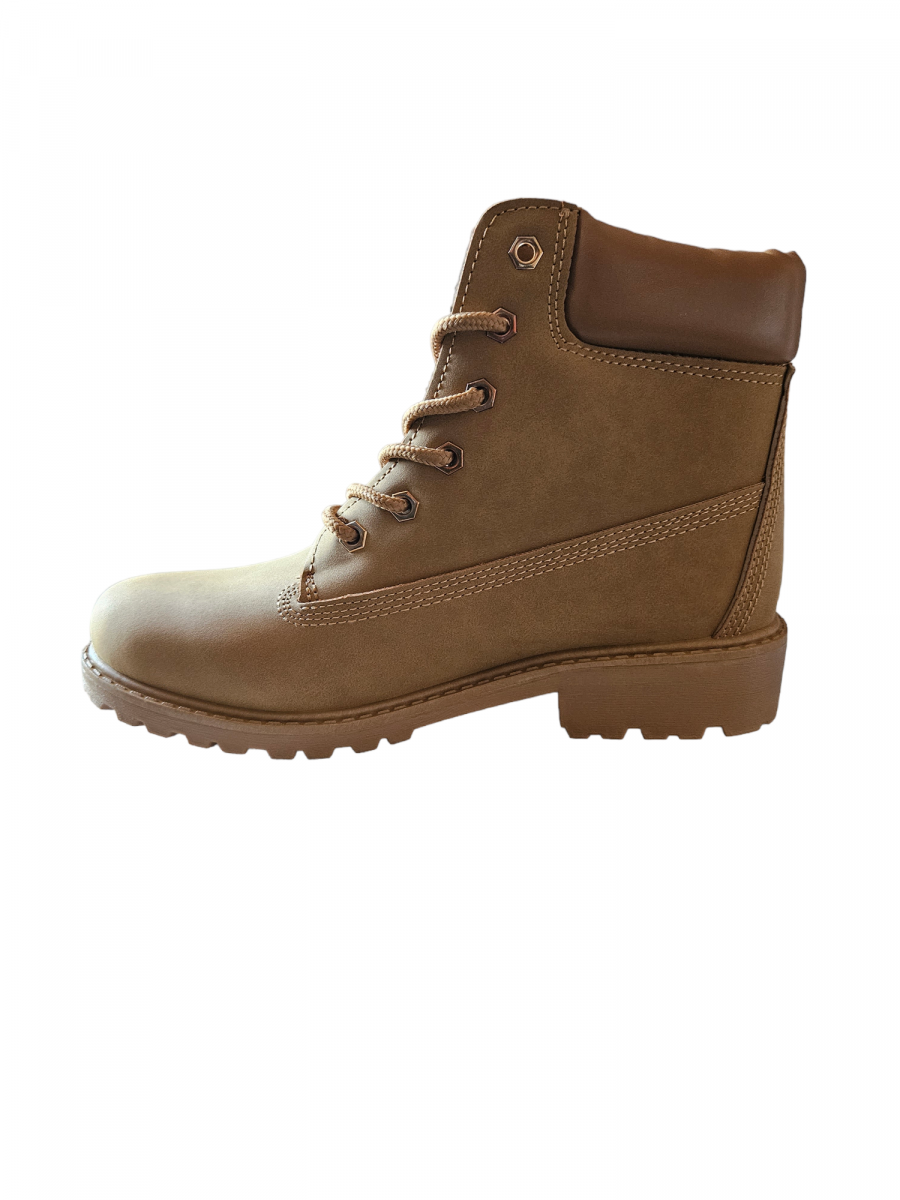 Bottines imitation Nubuck. Couleur Camel. Semelle en PVC.