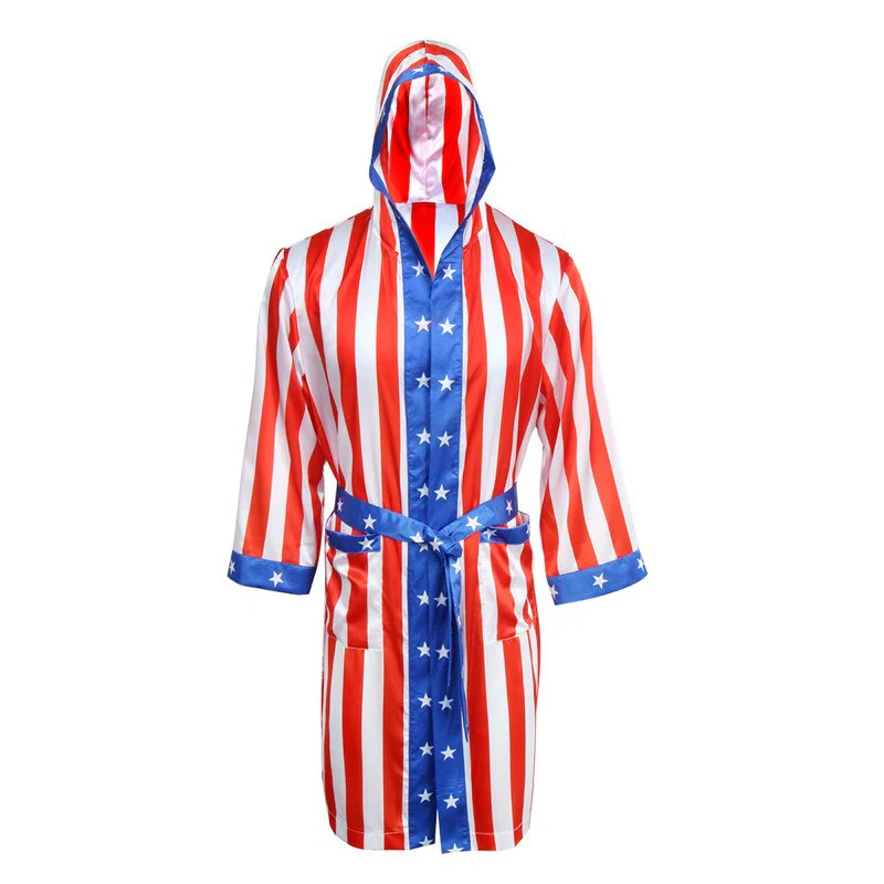 - Tenue complète, composée du short et de la robe Rocky Balboa, sous l’emblème du drapeau américain