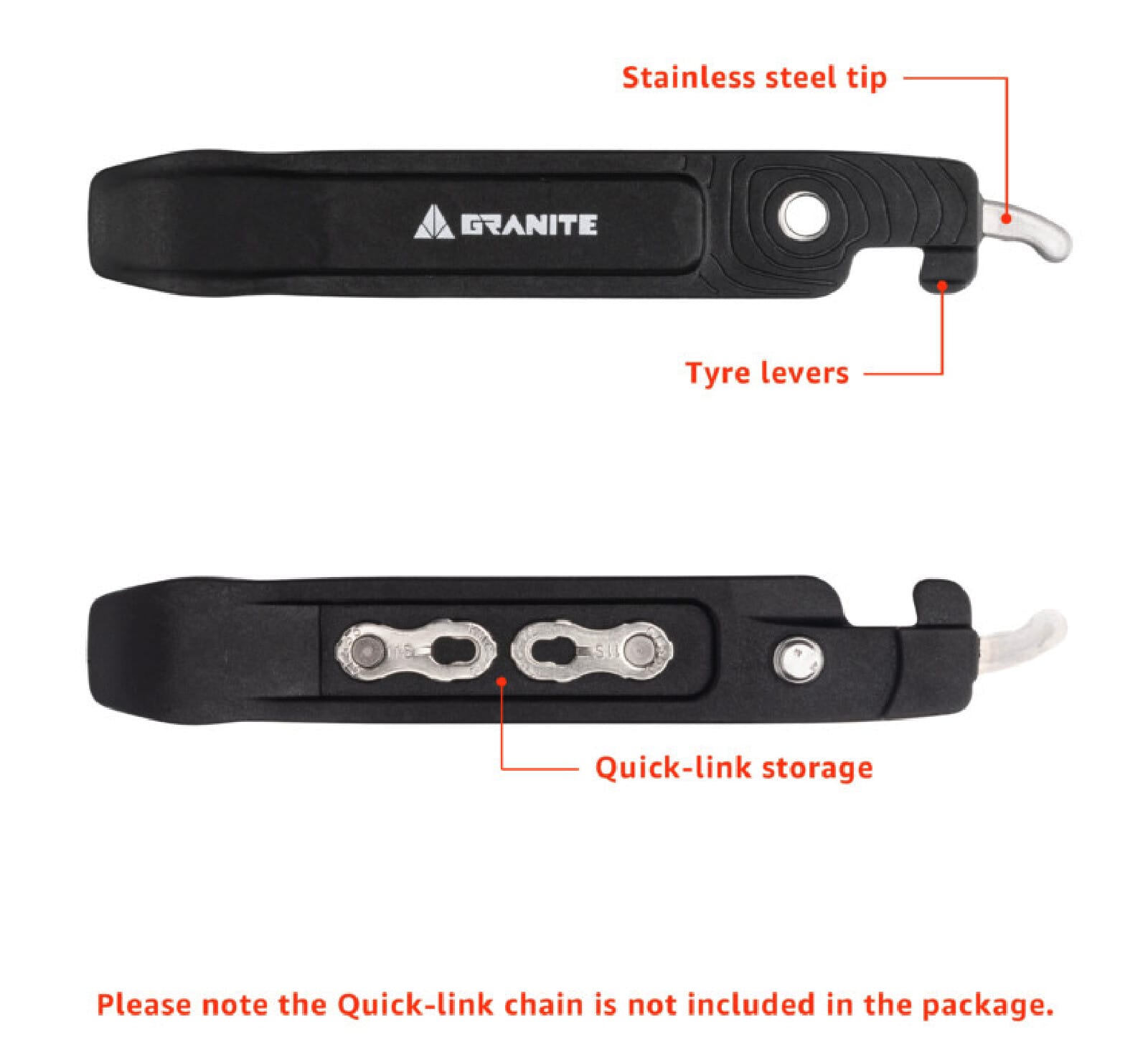 Demonte Pneu/ pince Granite à maillon rapide TALON,orange et inox X2