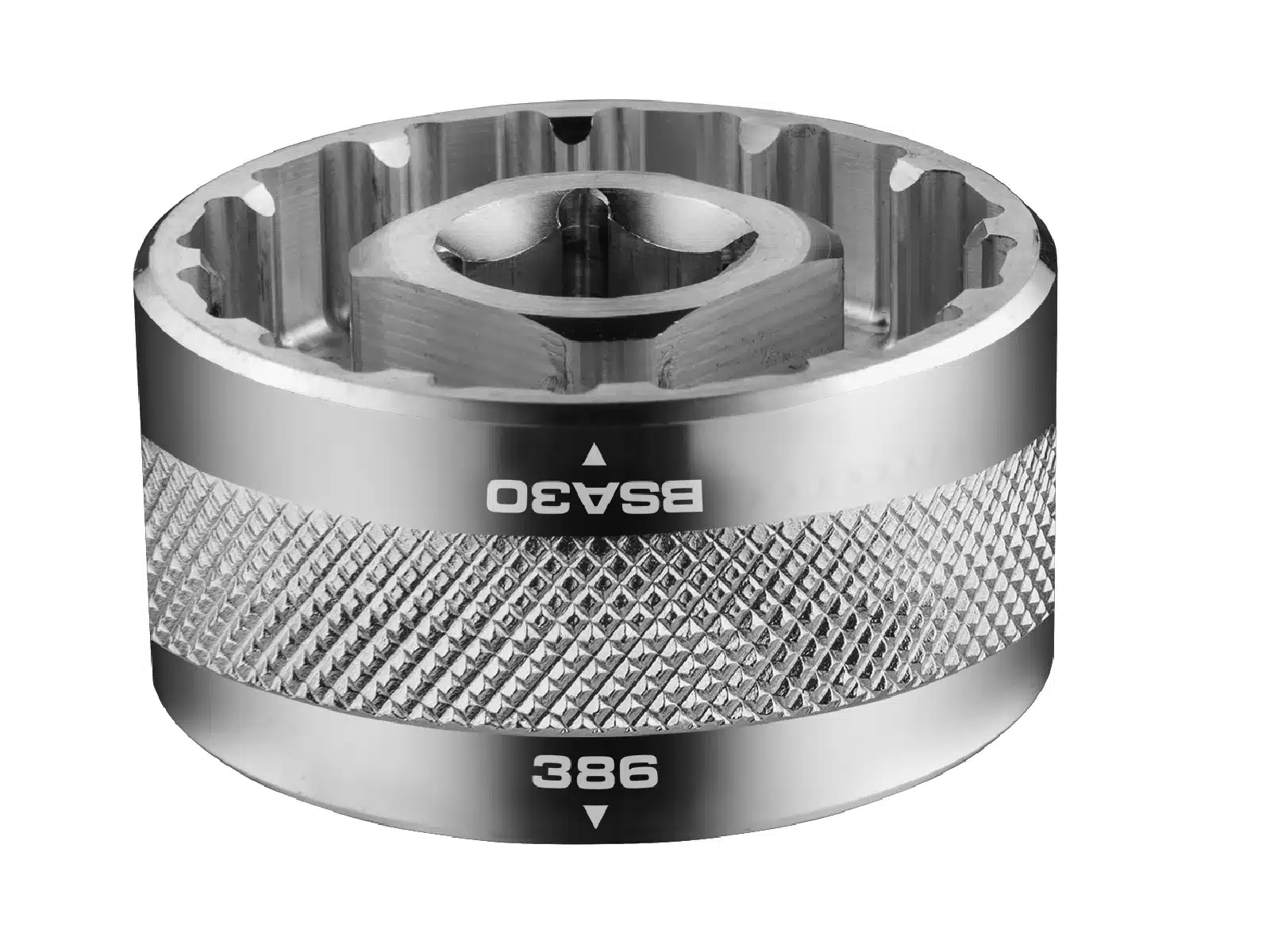 Douille pour boîtier de pédalier SRAM DUB Origine 46,5 mm, 12 cannelures, compatible avec Rotor® BSA 30, SRAM® DUB BSA (axe Ø28,99 mm), RaceFace® Cinch, Zipp® Vuma et Hawk Racing® BB3086. Convient également aux boîtiers FSA EVO 386 ou autres boîtiers de 48,5 mm, 16 cannelures.