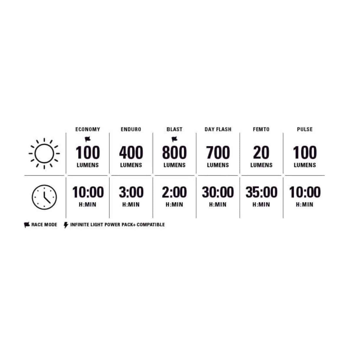 - Avant 800 Lumens / Arrière 300 Lumens