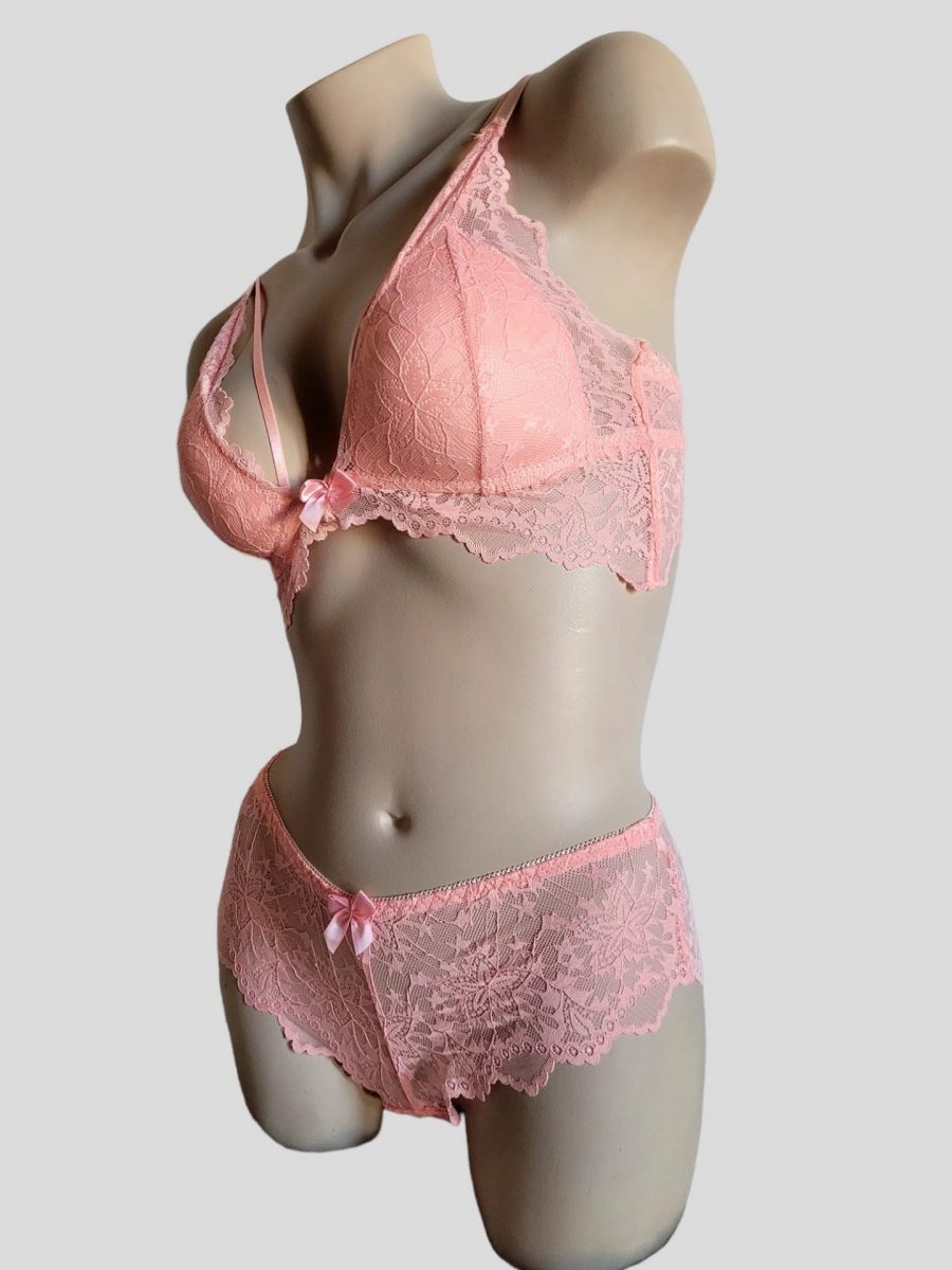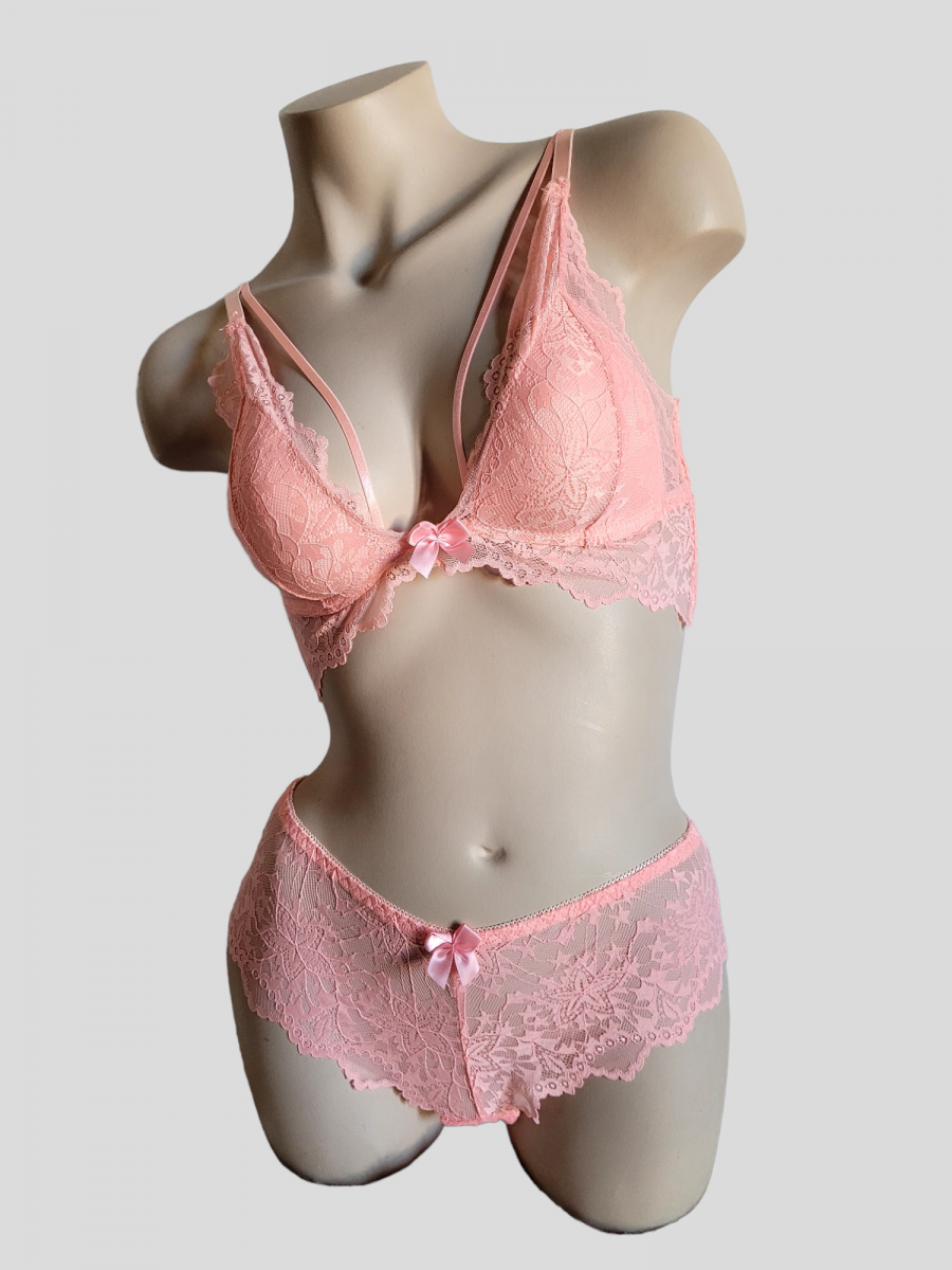 Ensemble soutien-gorge sans armature en dentelle, avec un laçage, assorti avec culotte. Du S au XL.