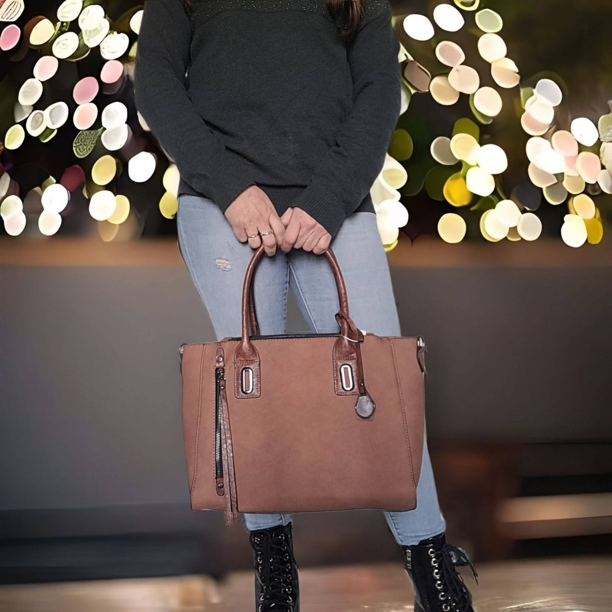 Sac à main grande taille. Dimension du sac 33*27*15. doublure avec poches. Rangements zippés à l’avant et à l’arrière. Poche zippée à l’arrière. Bandoulière réglable et amovible inclus.