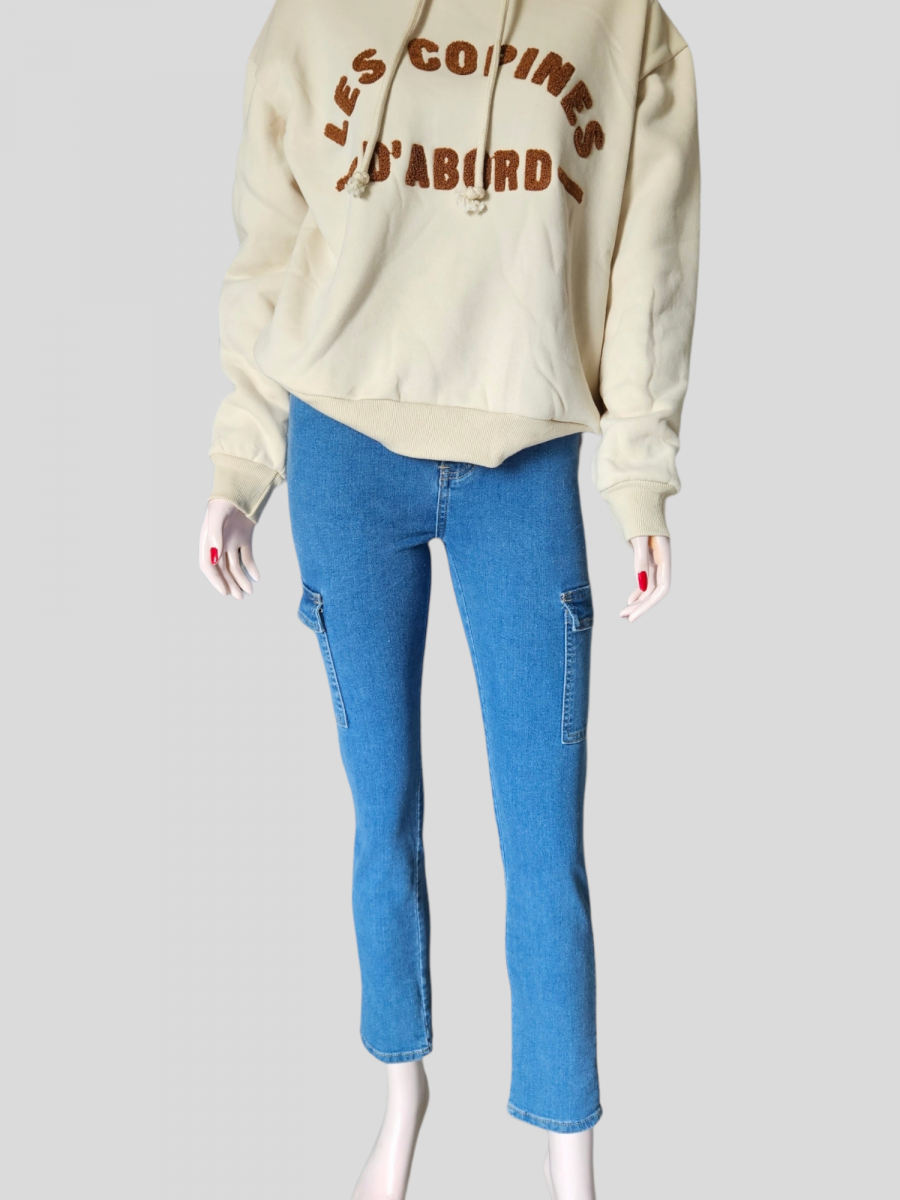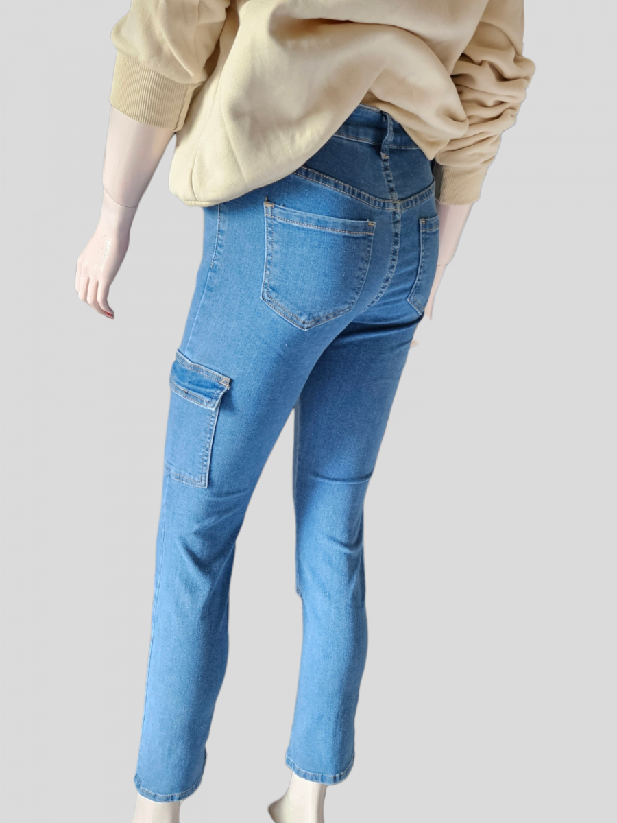Jean Cargo. Coton : 70%, Polyester : 27%, Élasthanne : 3% Du 34 au 42.