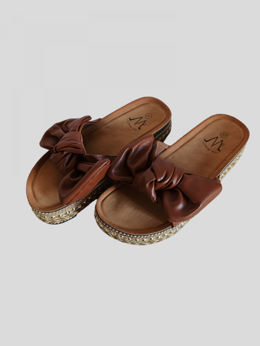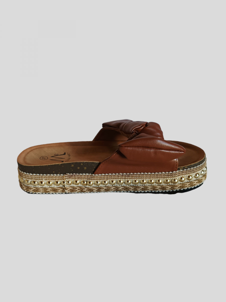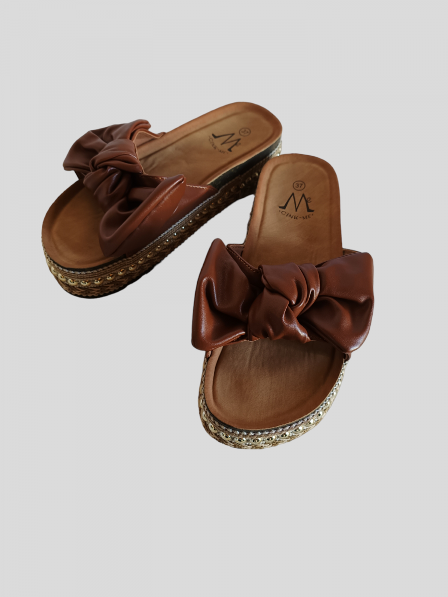 Mules plates à semelle épaisse. Mules avec nœud sur les bandes.
