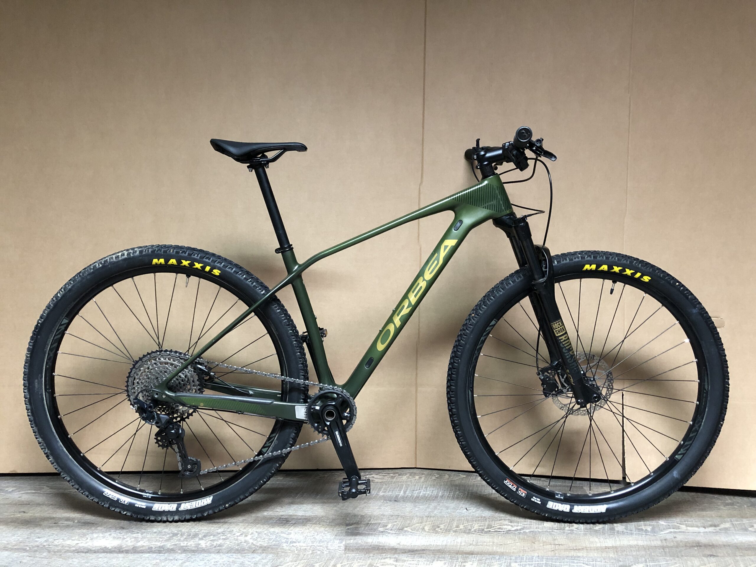 EPUISE. Cadre carbone, équipé de pneus tubeless. Shimano SLX 1x12V, fourche hydraulique. Vélo révisé par nos soins.