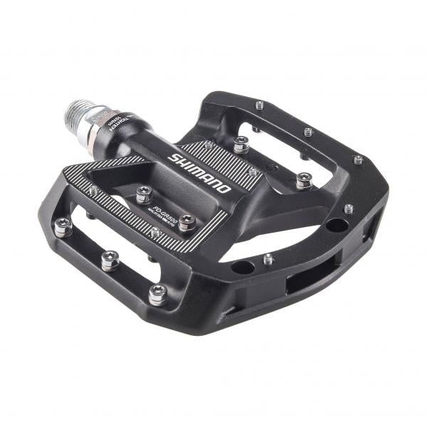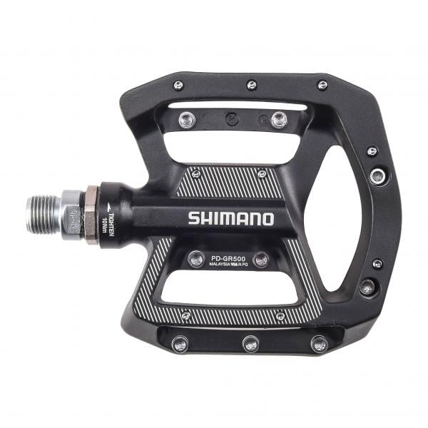 Prévues pour une pratique VTT ou BMX, les pédales plates SHIMANO PD-GR500 promettent un bon grip sous la chaussure du pilote grâce aux 9 picots intégrés sur chaque face.
