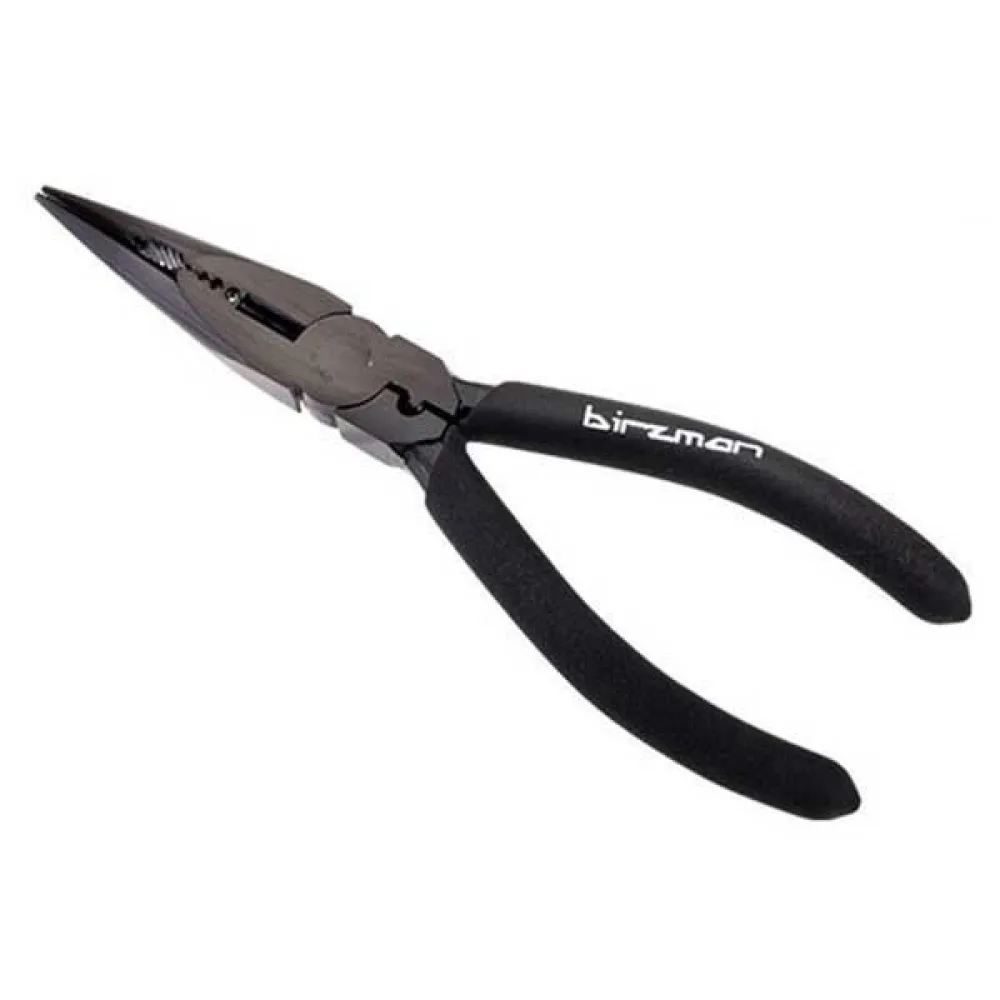 Pince à bec long Birzman, idéale pour atteindre les zones étroites et difficiles d’accès lors des réparations vélo. Parfaite pour manipuler de petits composants, câbles ou fils avec précision.