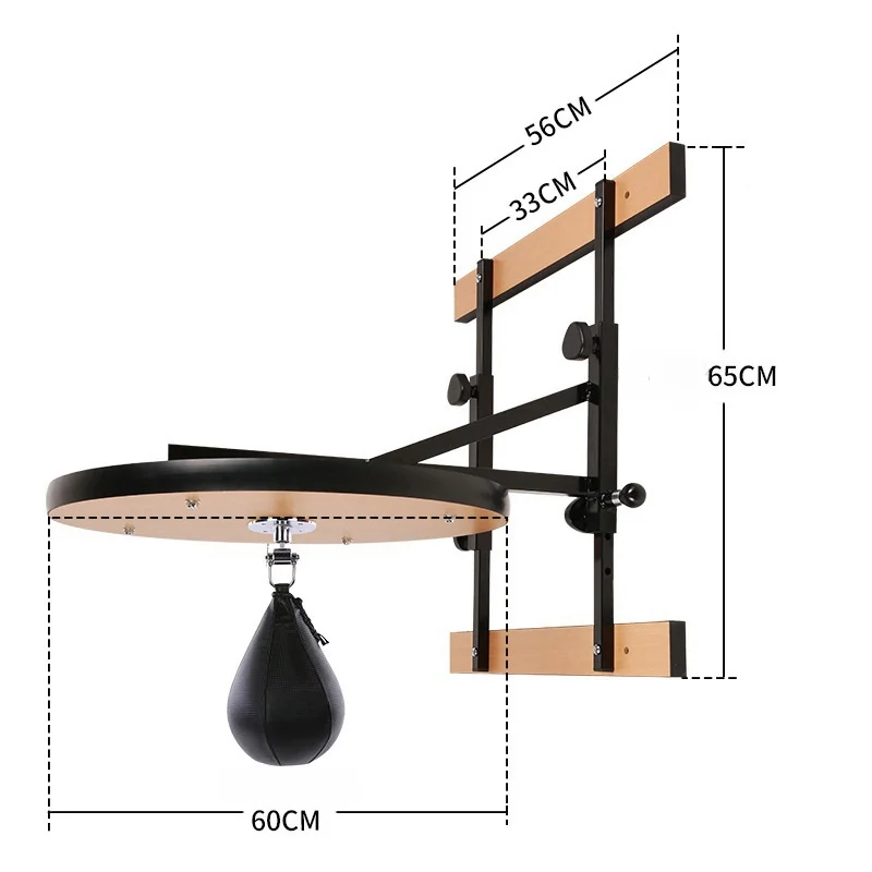 Plateforme pour poire de vitesse. Set complet avec plateforme de 60cm de diamètre, 4cm d’épaisseur, réglable en hauteur, y compris tous les accessoires de fixation.