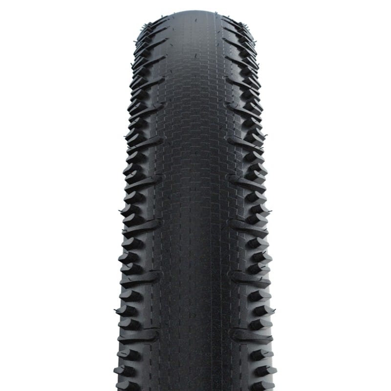 Le Schwalbe G-One RS Pro est un pneu semi-slick spécialement conçu pour la course, offrant une résistance au roulement parmi les plus faibles de la gamme G-One. Il garantit une efficacité maximale sur terrains secs, surfaces dures et routes asphaltées. Sa bande de roulement, dessinée en forme d’échelle, améliore la traction et le freinage à la fois pour la roue avant et la roue arrière. Grâce à sa construction souple, ce pneu assure une conduite douce tout en offrant une protection élevée contre les crevaisons, même dans des conditions de course difficiles.