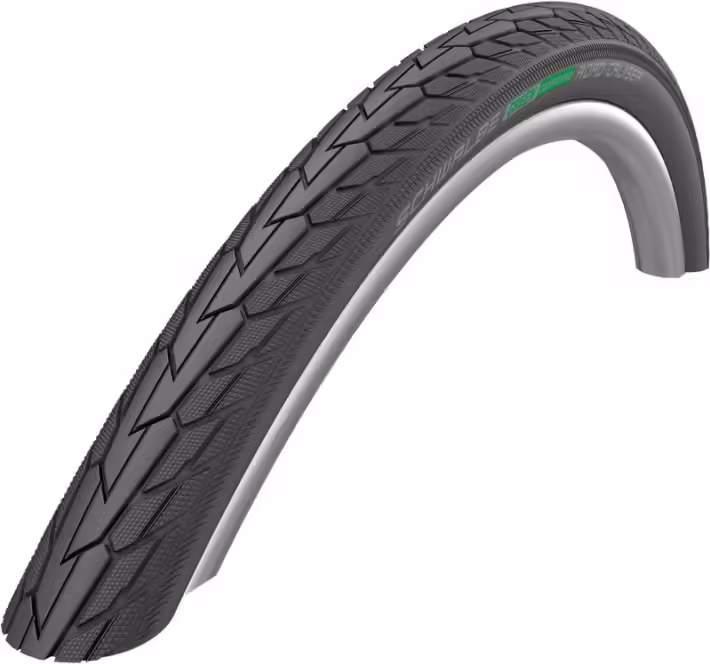 Les pneus Schwalbe Road Cruiser avec finition noire intègrent une innovation écologique majeure grâce à leur bande de roulement conçue avec le Green Compound, un procédé 100 % durable. Cette technologie exclusive repose sur l’utilisation de matières premières recyclées et renouvelables pour la fabrication de la gomme, une première dans l’industrie du pneu vélo. En plus de marquer un tournant vers une production plus respectueuse de l’environnement, ce procédé témoigne de l’engagement de Schwalbe pour la qualité, sans compromis sur les performances ni la durabilité.