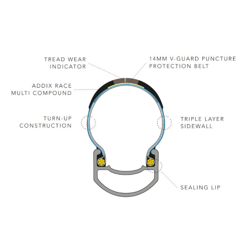 Le Schwalbe Pro One TLE 2020 est un pneu route hautes performances qui allie souplesse, vitesse, résistance et contrôle sans compromis, incarnant le meilleur de la technologie Schwalbe à ce jour. Sa carcasse Super Race “Souplesse” offre une déformation optimisée, assurant un excellent confort, une adhérence accrue et un rendement supérieur, rappelant la sensation des boyaux tout en évitant leurs inconvénients. Ce modèle intègre un renfort anti-crevaison V-Guard de 14 mm sous la bande de roulement, combiné à des flancs renforcés par trois couches pour garantir étanchéité et résistance aux déchirures. Sa gomme Addix Race Dual Compound, formulée avec une…