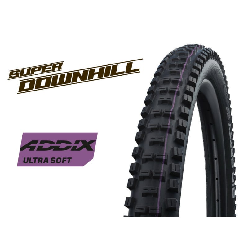 Le Schwalbe Big Betty revient dans une version repensée pour les terrains les plus extrêmes, désormais doté de la nouvelle carcasse Super Downhill, spécifiquement développée pour la compétition de descente, jusqu’au plus haut niveau en Coupe du monde. Conçu pour offrir des performances sans compromis, ce pneu s’adresse aux pilotes les plus exigeants, en quête de stabilité maximale et de résistance à toute épreuve. Sa construction robuste repose sur une double couche intégrale composée d’une carcasse à 6 plis (2 x 67 EPI) en polyamide, assurant une excellente protection de la bande de roulement, même à basse pression. Sur les…