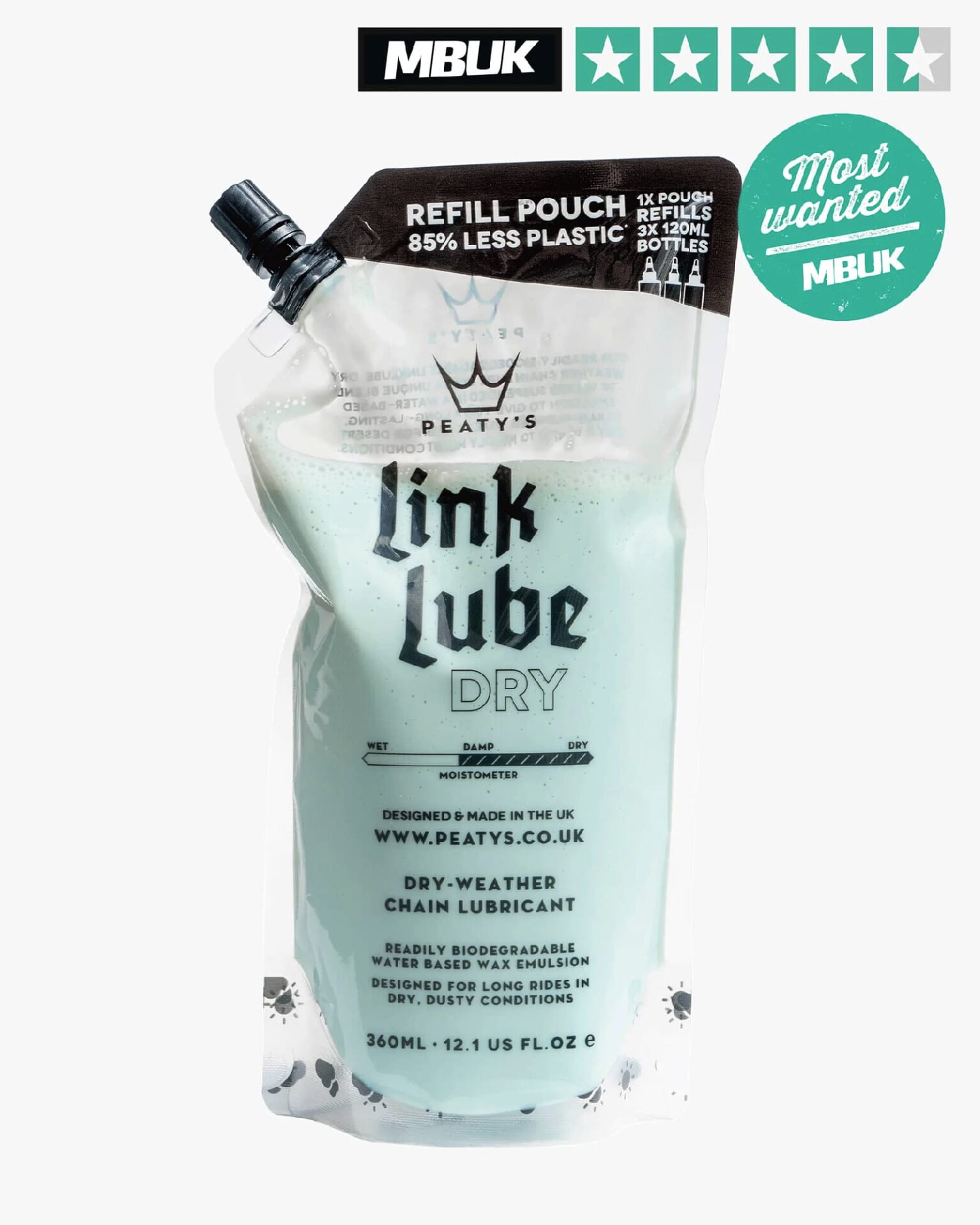 Recharge lubrifiant Peaty’s Link Lube condition sec poche de recharge 360ml