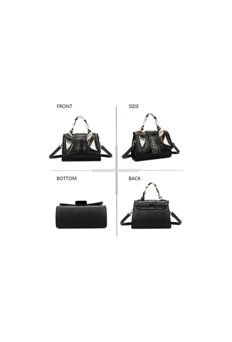 Sac à main élégant noir. Fermeture à rabat. Compartiment zippé.
