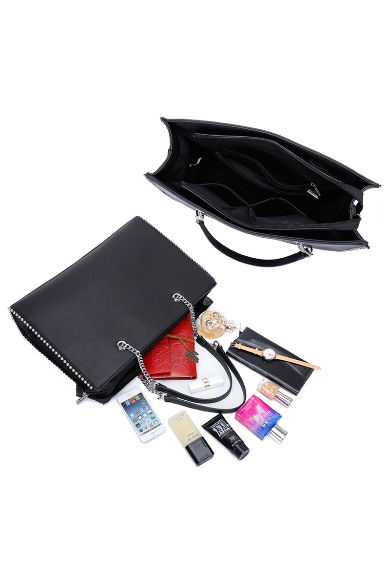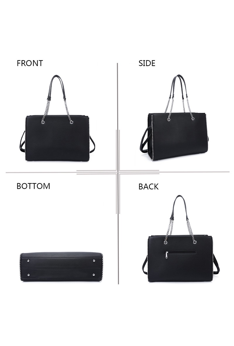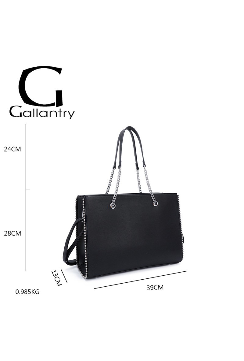 Sac Cabas Gallantry. Sac Cabas Chaîne bordé de perles. Ce sac est fourni avec sa bandoulière réglable et amovible. Deux poches zippées à l’intérieur. Une poche zippée à l’arrière du sac. Dimension du sac 39*28*13.