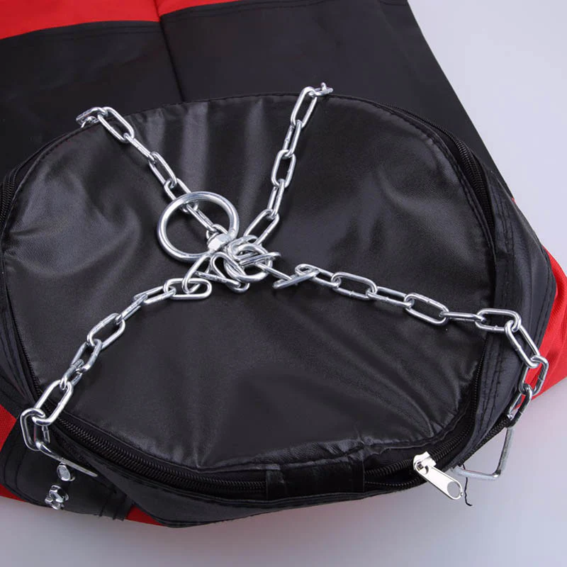 SAC DE FRAPPE, HAUTEUR 120CM, EN TISSU EPAIS MULTICOUCHE A HAUTE DENSITE, RESISTANT ET DURABLE. SAC DE BOXE DE COULEUR ROUGE, LIVRE AVEC CHAINES EN ACIER 4 BRINS, PIVOT METALLIQUE, MOUSQUETON. CE SAC EST IDEAL POUR LA PRATIQUE REGULIERE DE LA BOXE ANGLAISE. IL CONVIENT POUR UN USAGE A DOMICILE OU EN SALLE, AUSSI BIEN POUR LES ENTRAINEMENTS TECHNIQUES QUE POUR LA PREPARATION AU COMBAT