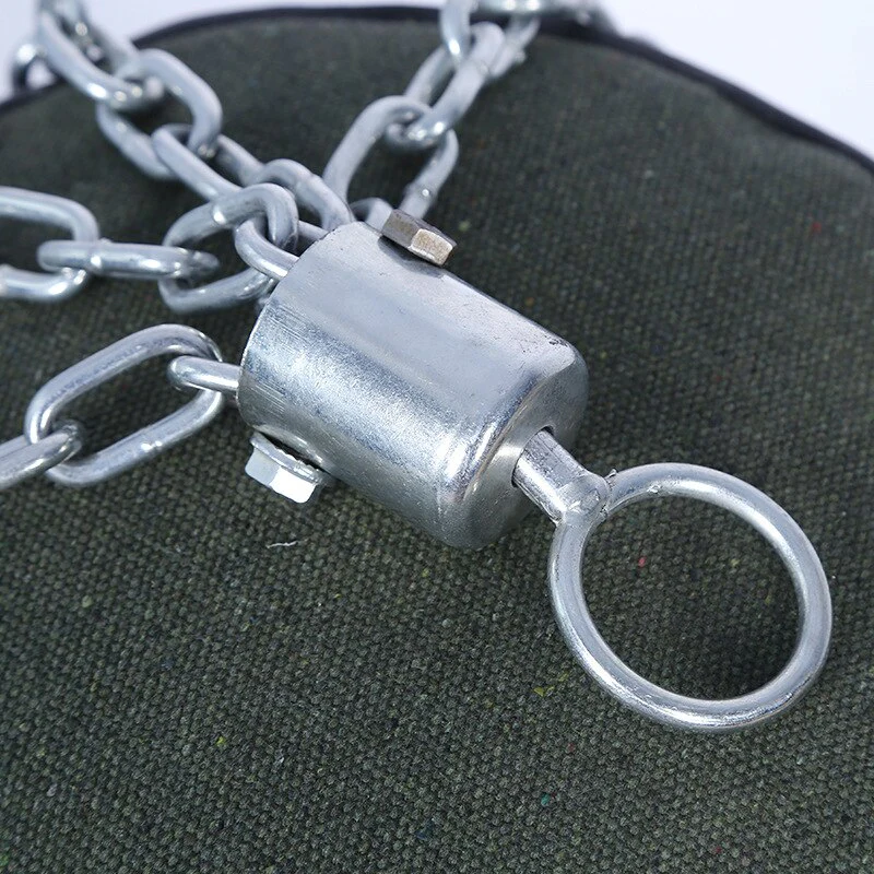 Set complet comprenant : chaîne en acier 4 brins + pivot métallique + mousqueton + cheville métallique à expansion pour fixation au plafond.