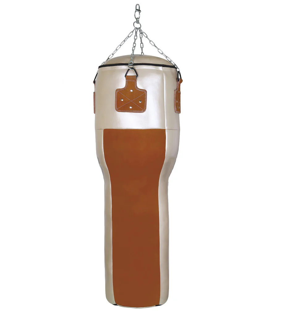 Magnifique sac de frappe Uppercut de grande hauteur (150cm) en forme de T ou de bouteille inversée. Ce sac vous permettra d’alterner efficacement les phases de travail à la tête et au corps, tout en travaillant vos uppercuts. Le revêtement en Cuir PU, finition satiné, en font un produit boxe de premier plan.