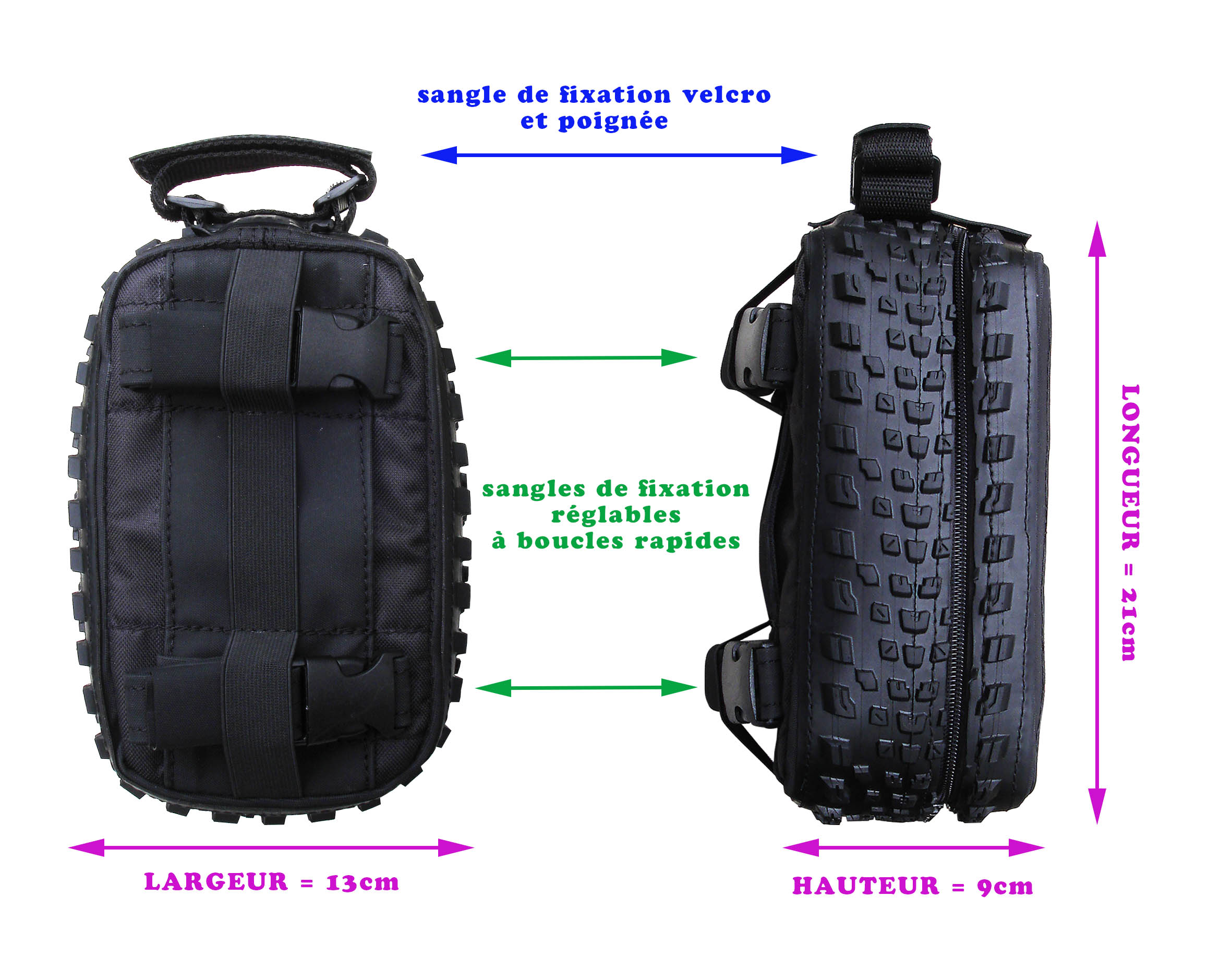 Rembourrée avec des matières imperméables et anti-glisse afin d’assurer le bon maintien de la sacoche et vos affaires en sécurité.