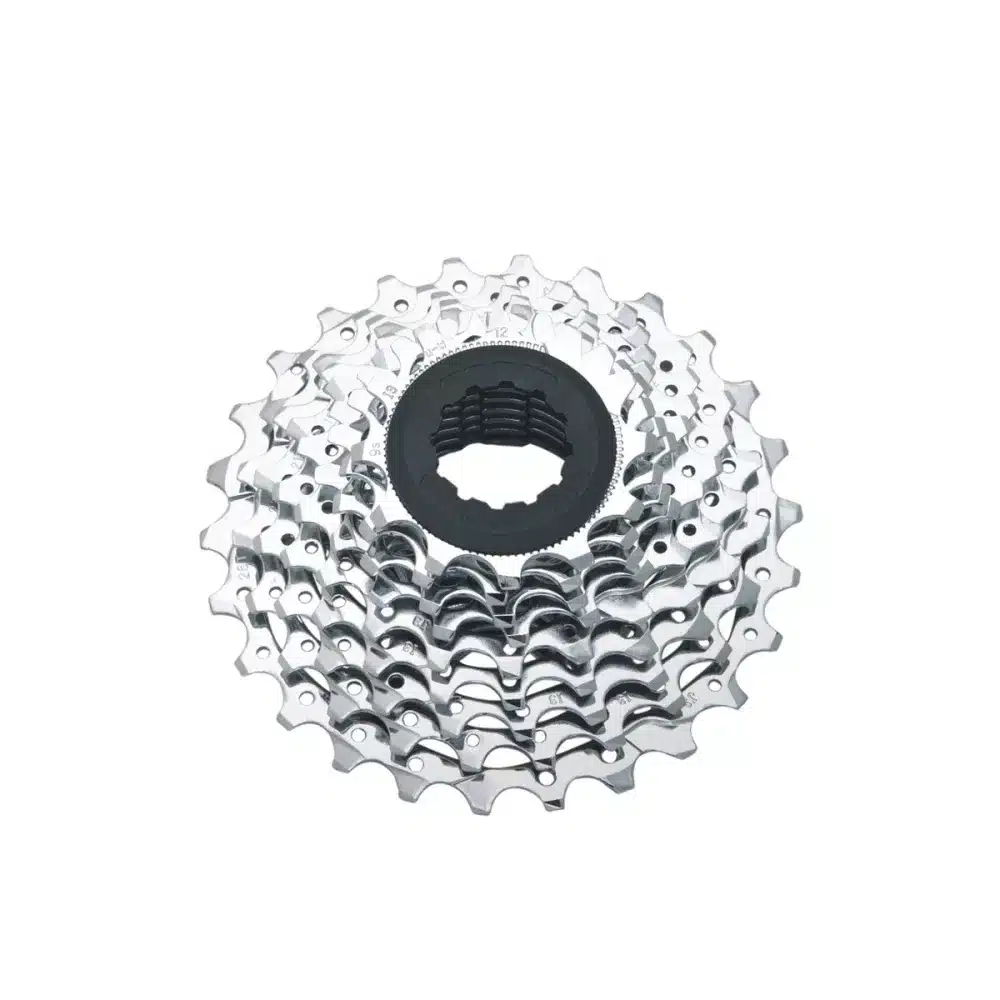 Cassette 9 vitesses PG950 compatible Shimano, offrant une plage de dents 11-32 adaptée aux transmissions route et VTT. Elle garantit des changements de vitesses précis et une bonne polyvalence pour un large éventail d’utilisations