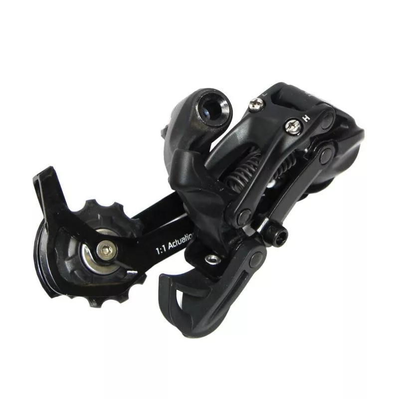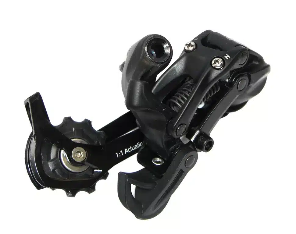 Dérailleur arrière Shimano X5 pour VTT, compatible transmissions 8 et 9 vitesses. Chape longue pour une grande capacité de démultiplication, idéal pour les configurations avec grand cassette ou triple plateau. Finition noire robuste.