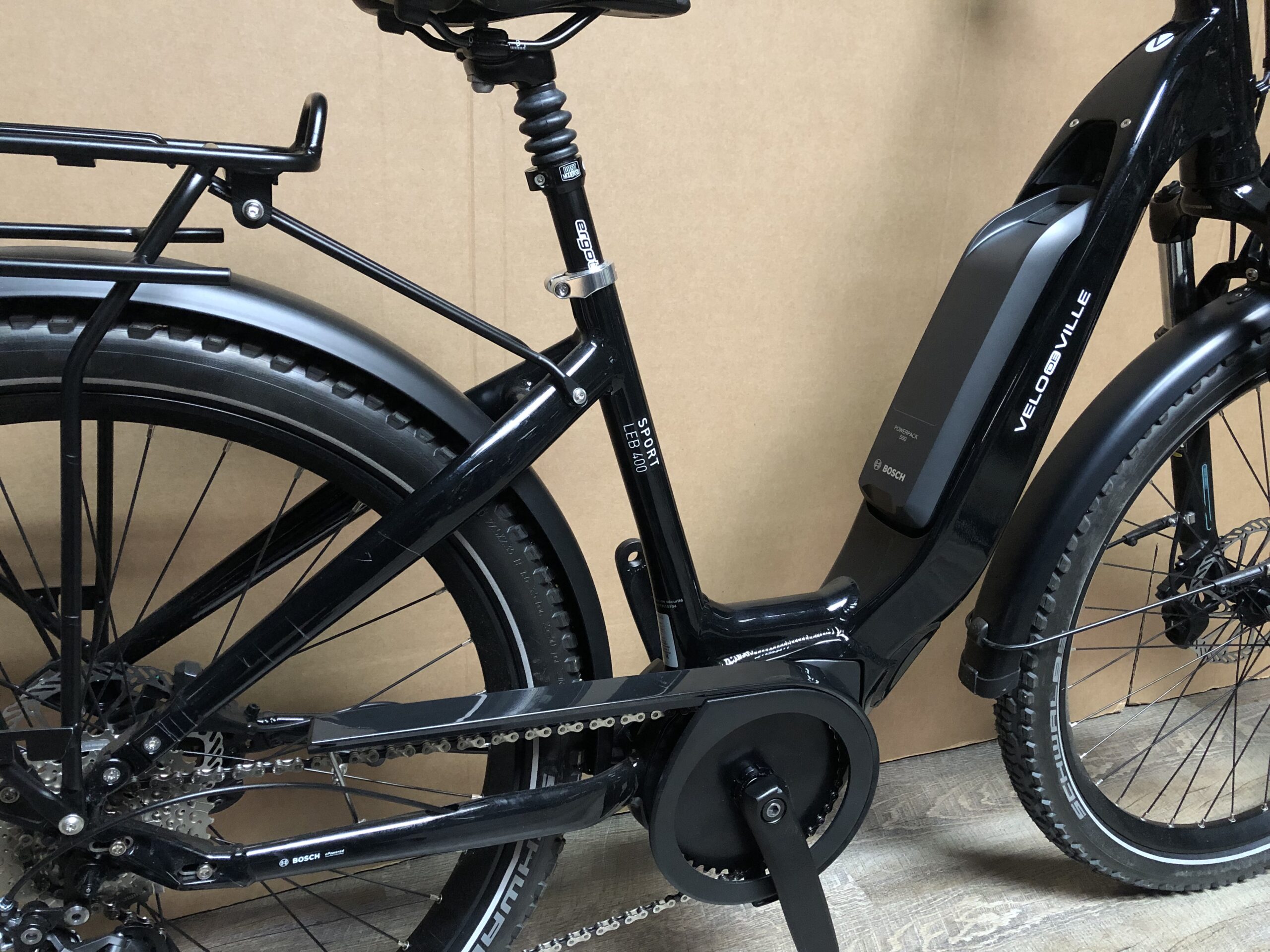 EPUISE. Rayures sur hauban droit (voir photo). Marque allemande de grande qualité et très solide. Ses composants (Ergotec, Bosch, Shimano 9 vitesses, Busch&Müller, Axa) sont d’excellente qualité ! Peinture Epoxy ultra résistante, moteur Bosch 50 Nm silencieux et hyper agréable sur les parcours gentiment vallonnés. Batterie de 400 Wh permettant sur ce vélo une autonomie généralement constatée de 60 à 80 km.