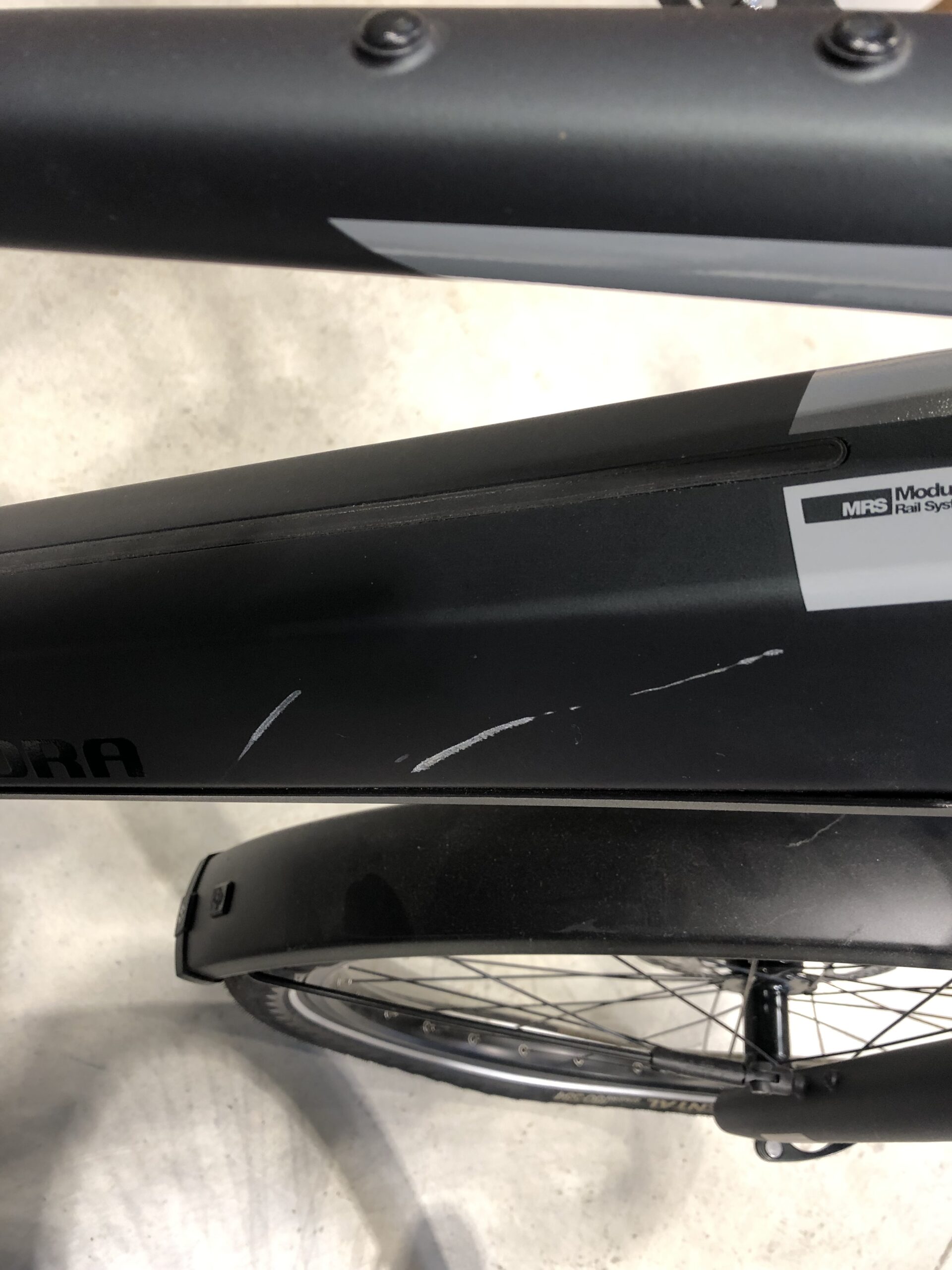 Taille 44 (XS). Vélo rayé sur le tube diagonal (voir photo). Equipé d’un moteur YAMAHA puissant 70 Nm et d’une batterie de 630 Wh.